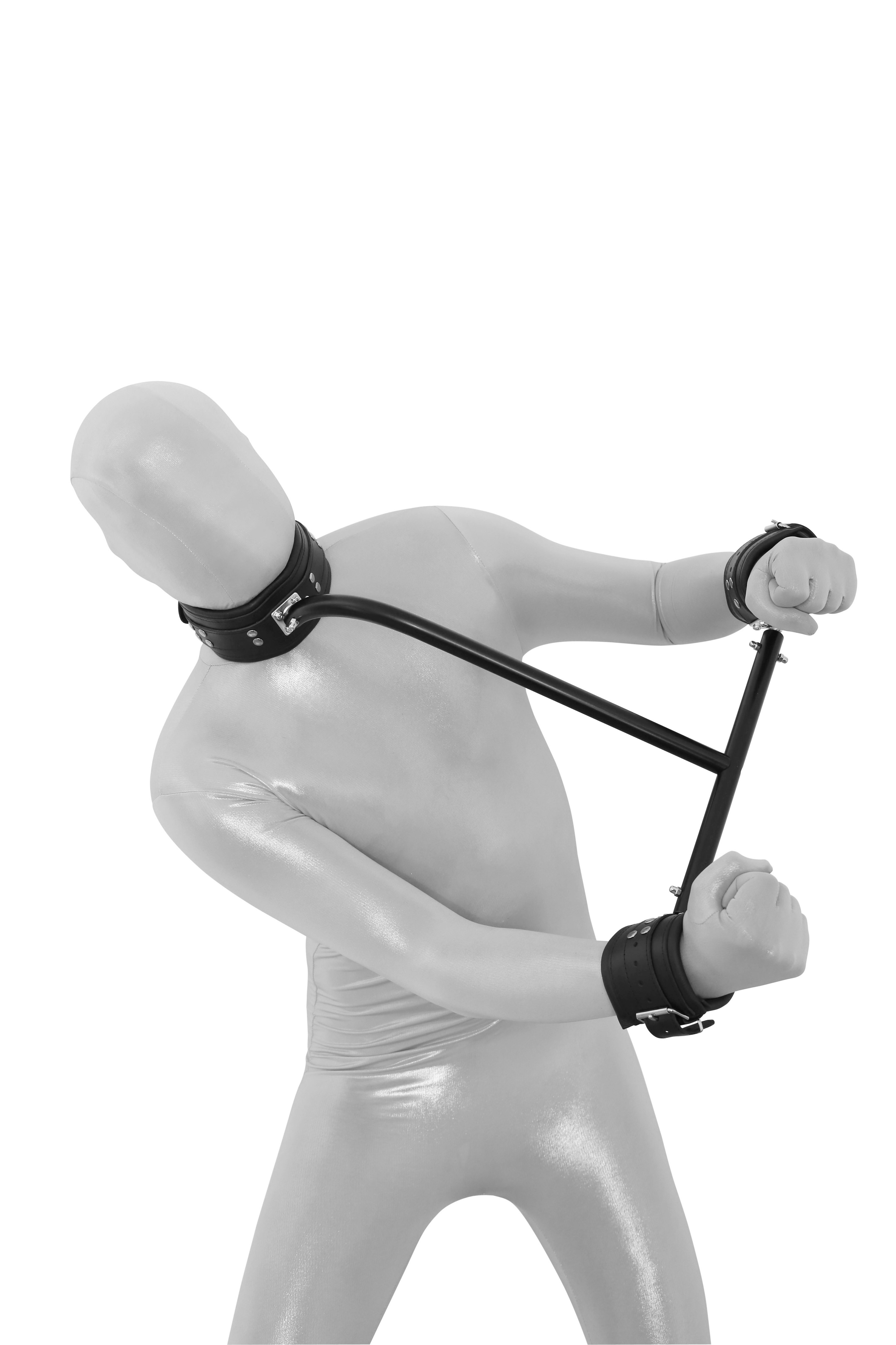 Leder Handfesseln mit Ketten und Nackenstütze