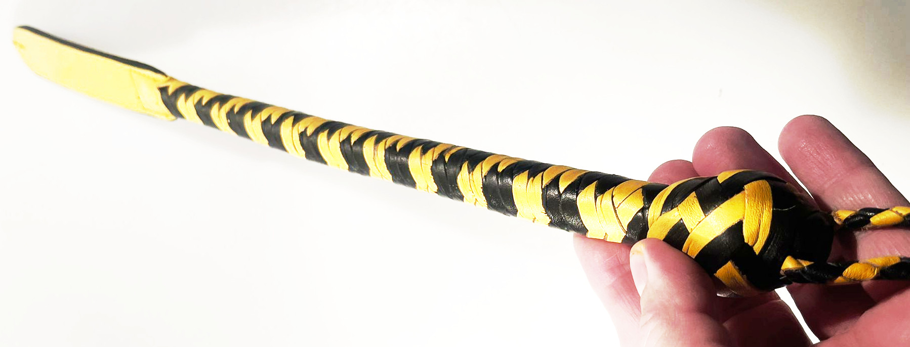Kurzer Kantschu - Hochwertige Lederpeitsche mit Klatsche 47cm Black-Yellow