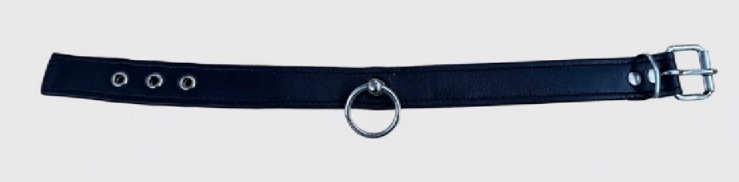 Choker - Halsband der O in Schwarz - echtes Leder mit grossem Ring - Grösse M