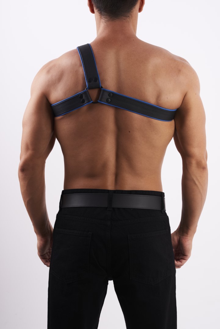 HighQuality - Soft Leder Brust Harness Y Schwarz/Blau