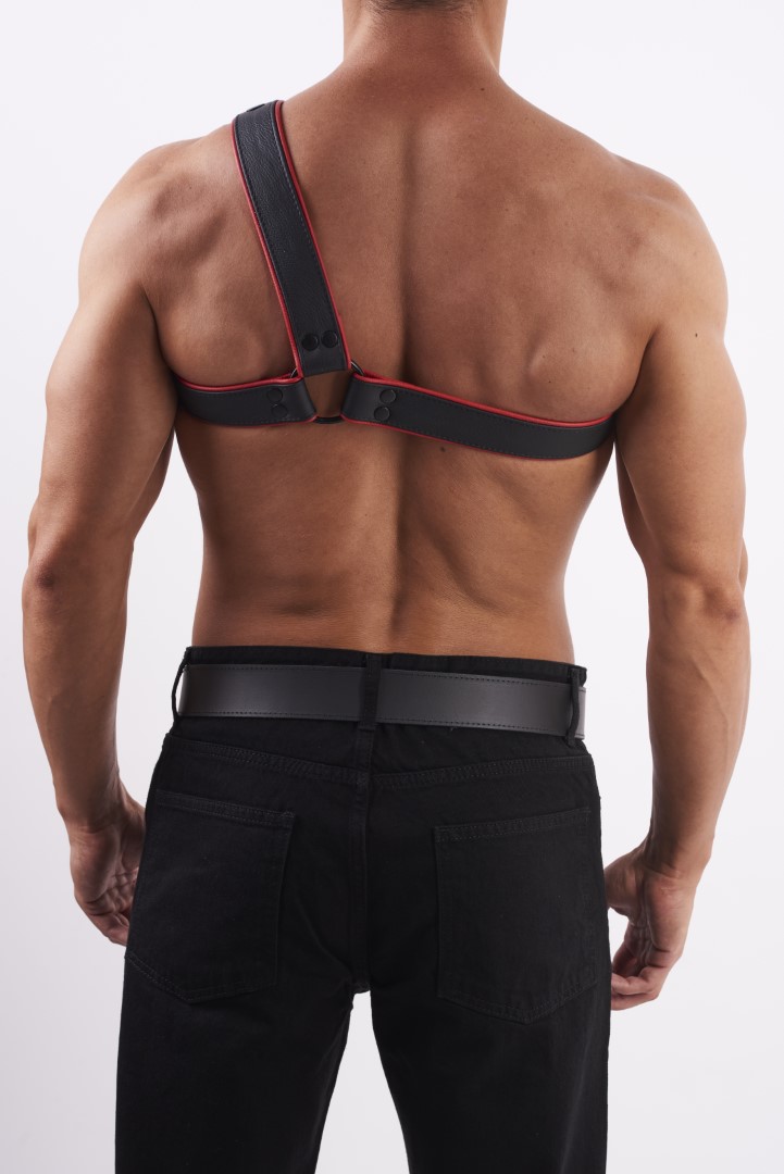 HighQuality - Soft Leder Brust Harness Y Schwarz/Rot