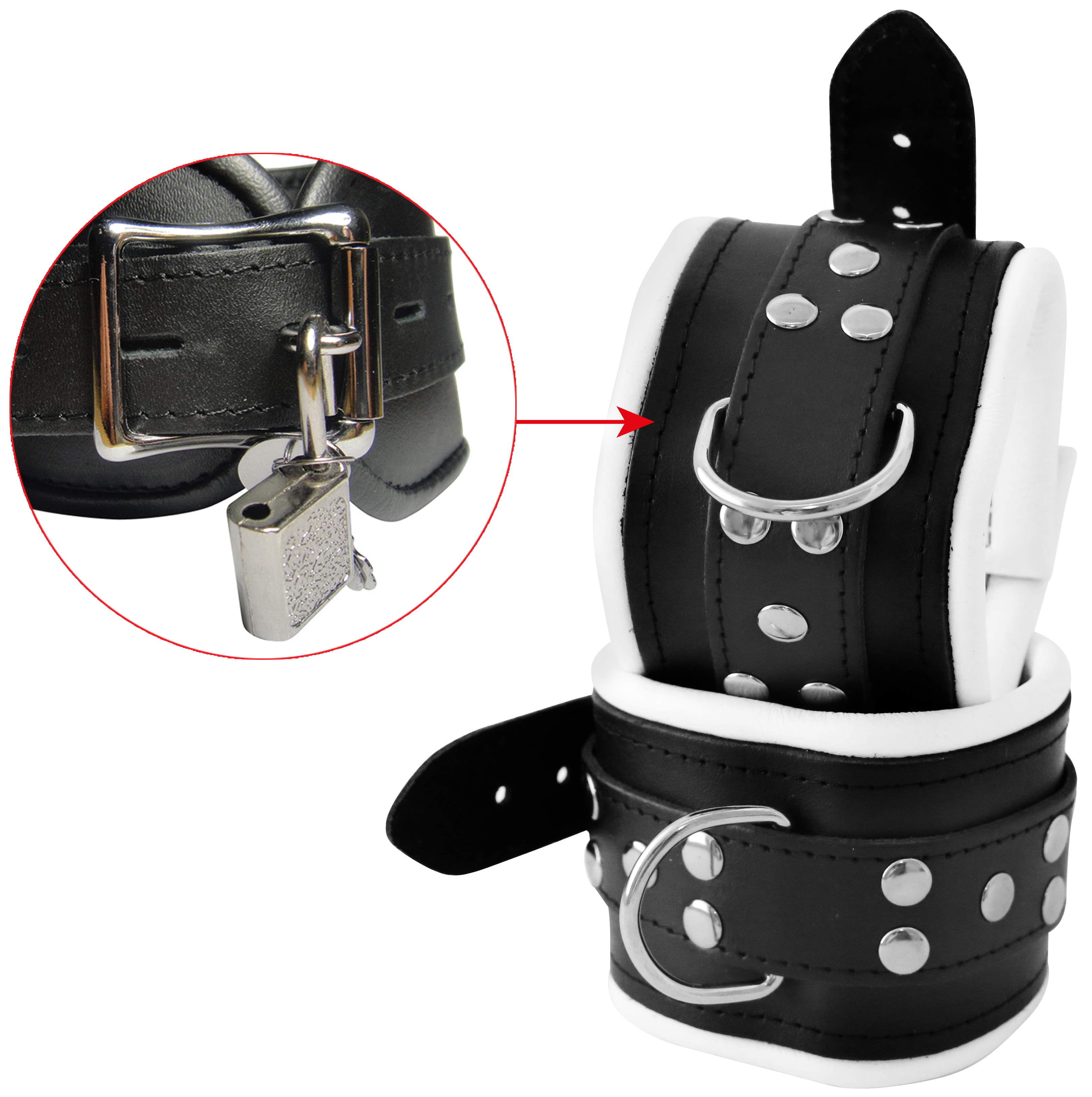 Innen mit weichem Leder gepolstert. D-Ring geschweißt.(inkl. 2 Schlösser)