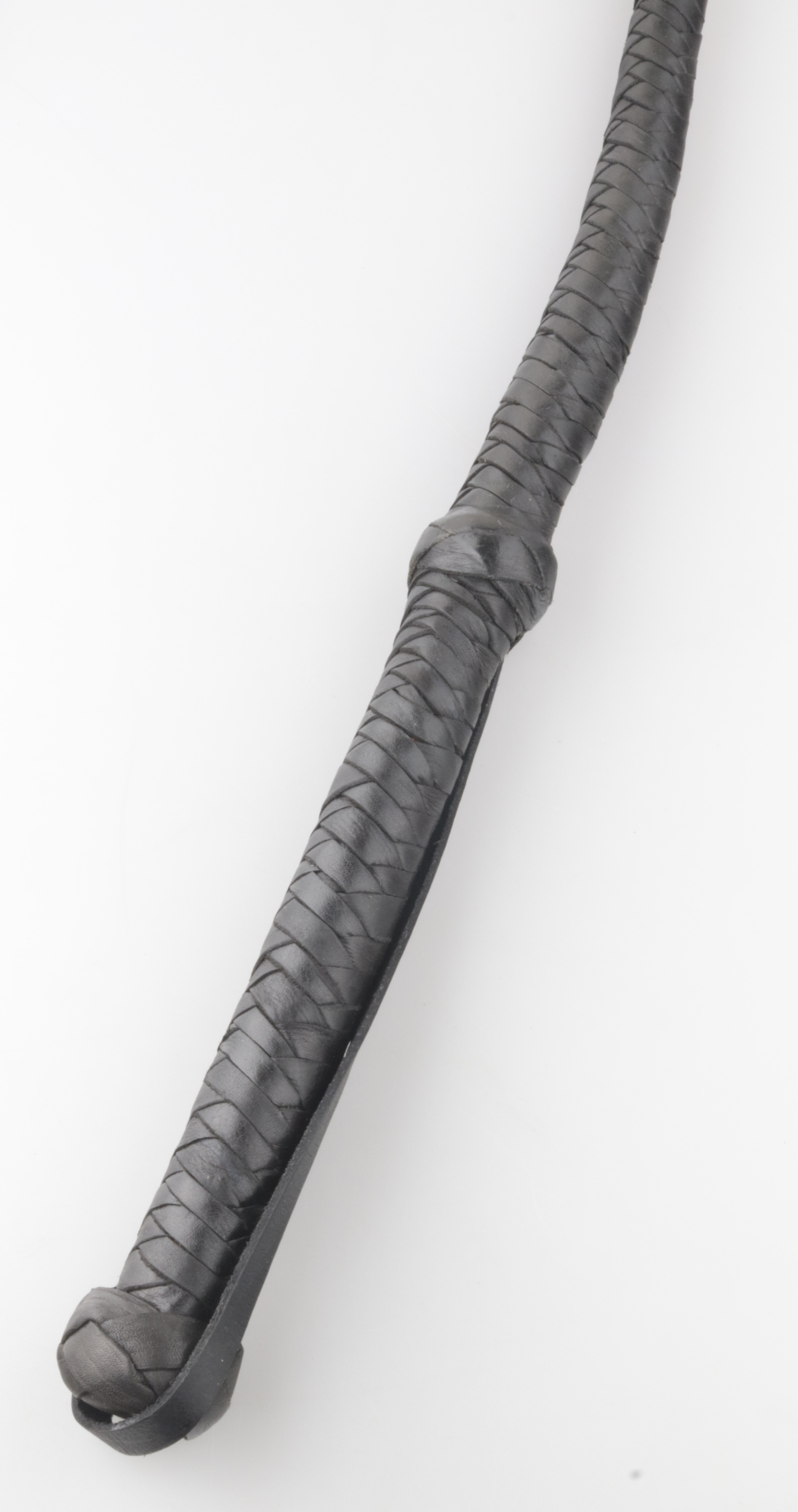 Der stabile Griff liegt mit ca. 20–22 cm Grifflänge angenehm in der Hand. Dank eines Griffdurchmessers von ca. 3 cm wirkt die Peitsche robust und lässt sich sicher führen – für kontrollierte Bewegungen und saubere Schläge.